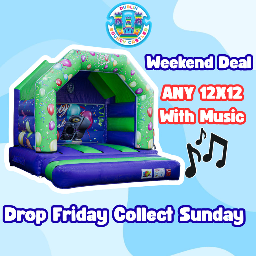 This 12x12 With Music Bouncy Castle is one of the most popular choices for birthdays and weekend celebrations. The built-in speaker and disco lights transform it from a regular inflatable into a party hub where kids can bounce, dance, and enjoy the music. Delivered Friday and collected Sunday, this deal gives you peace of mind with a full weekend of entertainment included.