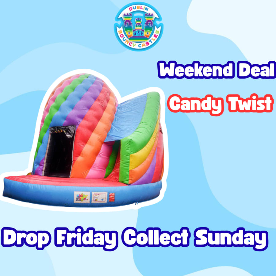 Make your weekend celebration sweeter with the Candy Twist Bouncy Castle. A bright, colourful inflatable with a slide that guarantees hours of fun!