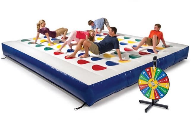 Our inflatable Giant Twister is a giant version of a popular game. This game will have everyone who plays entertained. The aim of the game is, you have a spin selector which decides which colour each players hand or foot goes on, watch them struggle as they try to stay up. Hours and hours of fun are guaranteed with our Inflatable Twister. Great entertainment for any party! It is suitable for adults as well as for kids!