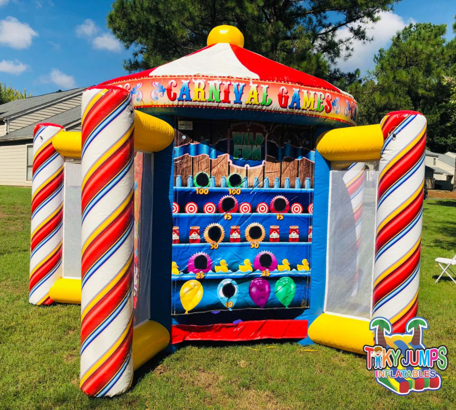 This inflatable includes 5 games with vibrant artwork that will make any space feel like a carnival. This 5 in 1 also includes built in rings to display prizes.