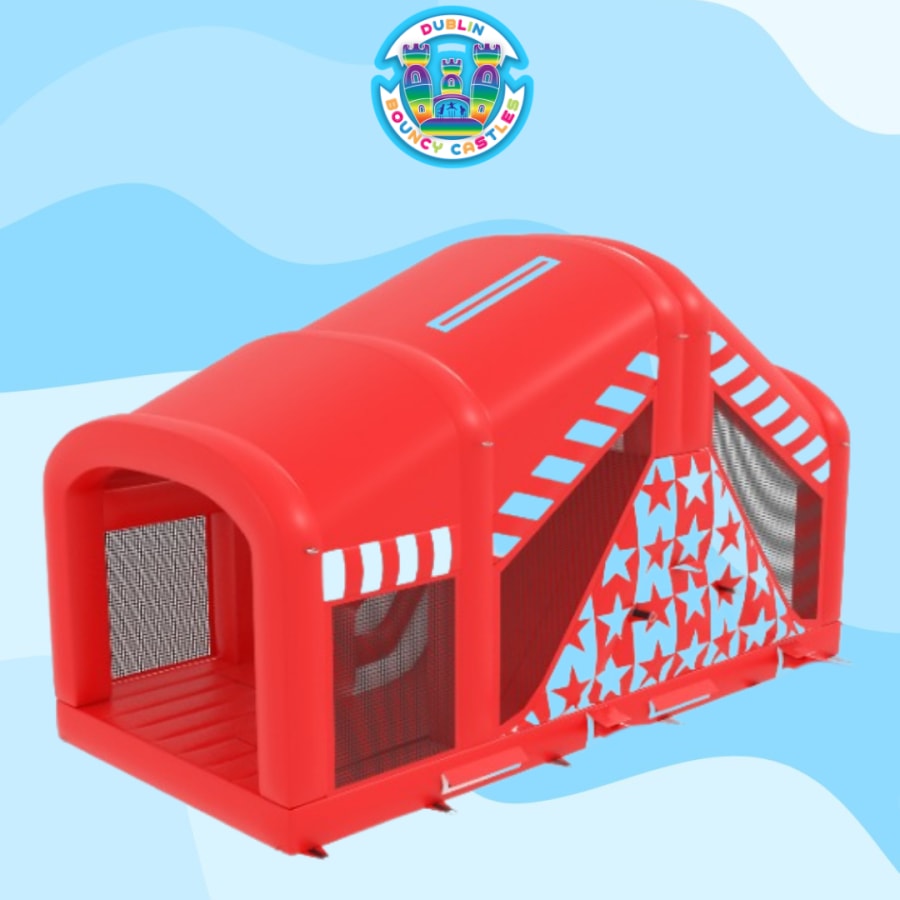 Looking to add a splash of vibrant energy and endless fun to your next party or event? Our Main Service Carnival Fun Run (Part 4) in Dublin is the perfect attraction for all ages! Featuring a striking red and white carnival theme, this bouncy castle combines the thrills of a classic obstacle course with the excitement of an inflatable slide, guaranteeing hours of laughter and entertainment for everyone.