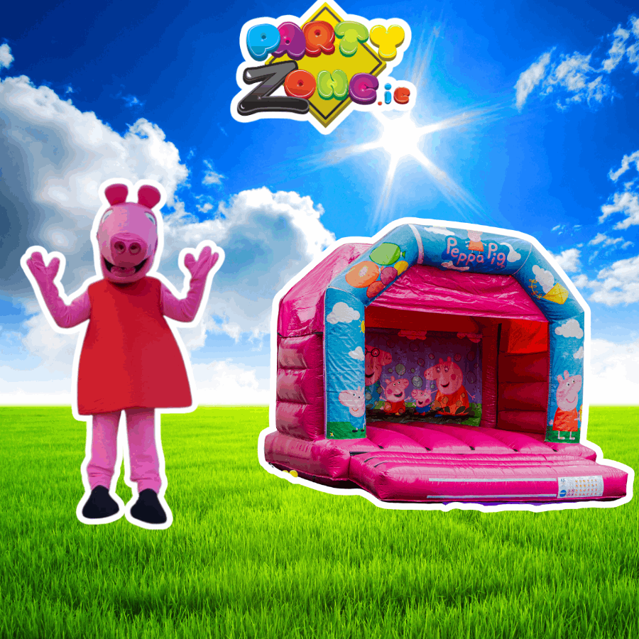 Peppa Pig mascot hire Dublin | Peppa Pig bouncy castle hire Dublin | Peppa Pig 12x12 bouncy castle | Peppa Pig party package Dublin | toddler party hire Dublin | kids party package Dublin | bouncy castle and mascot bundle | mascot costume hire Dublin | character party hire Dublin | partyzone.ie