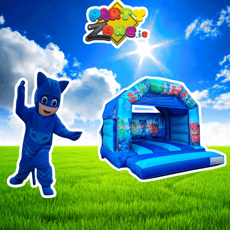 PJ Masks mascot hire Dublin | Catboy mascot hire Dublin | PJ Masks bouncy castle hire Dublin | PJ Masks 12x12 bouncy castle | superhero party package Dublin | kids party hire Dublin | bouncy castle and mascot bundle | mascot costume hire Dublin | character appearance Dublin | partyzone.ie